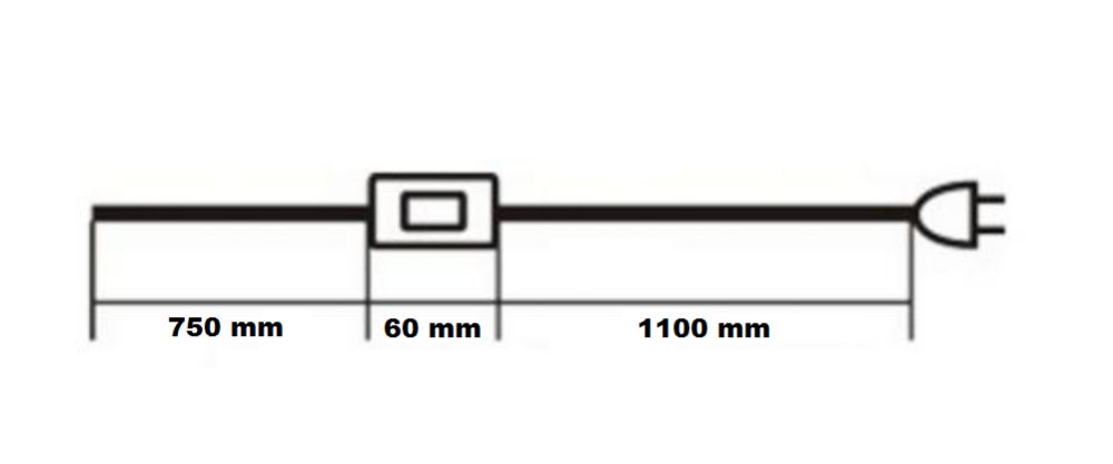 1,85 méteres (1,1+0,75 m) 2x0,75 mm2 MTL vezetékkel szerelt hálózati csatlakozókábel egypólusú kapcsolóval.