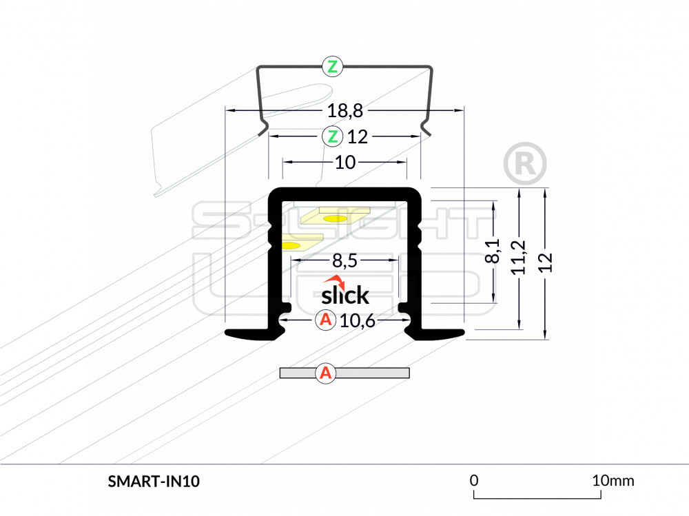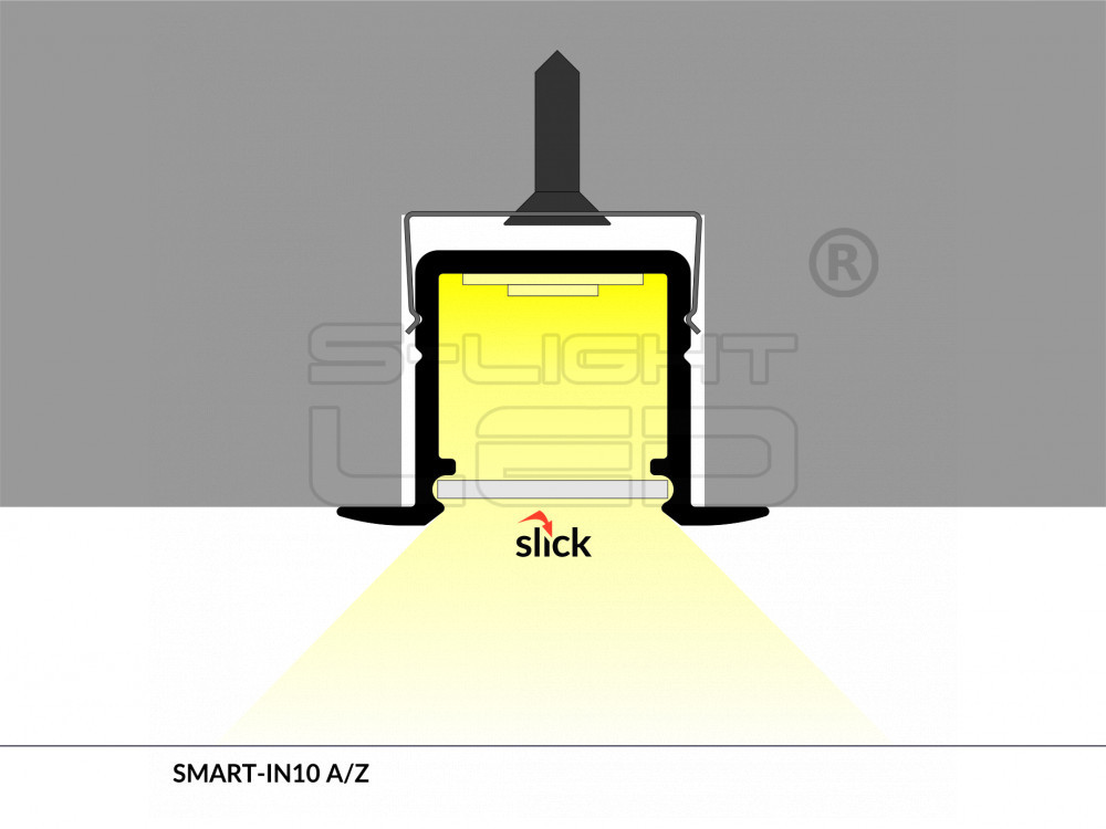 A SMART-IN10 A/Z ELOXÁLT LED profil használatával homogén fénysávokat alakíthat ki bútorokban, tömör, vagy gipszkarton falakban.